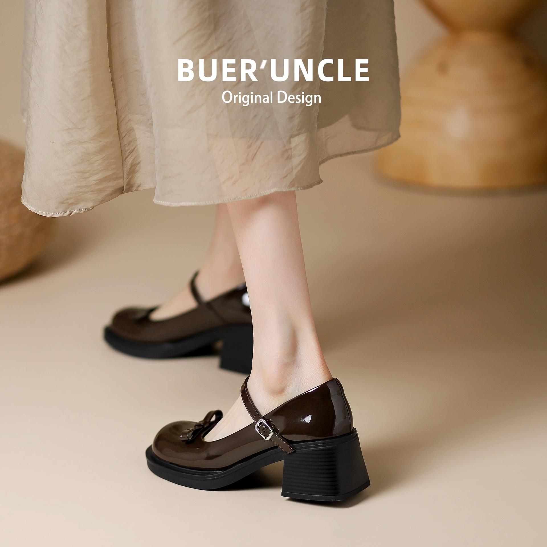 玛丽珍鞋 坊 2025年新款 法式 女 温柔软皮蝴蝶结中粗高跟单鞋 不二鞋