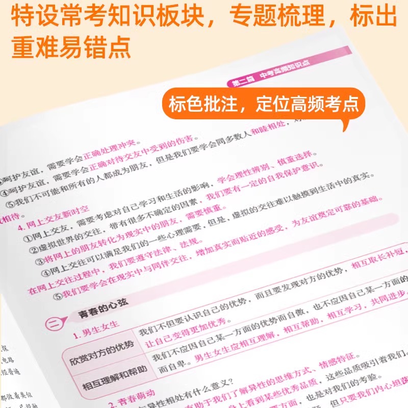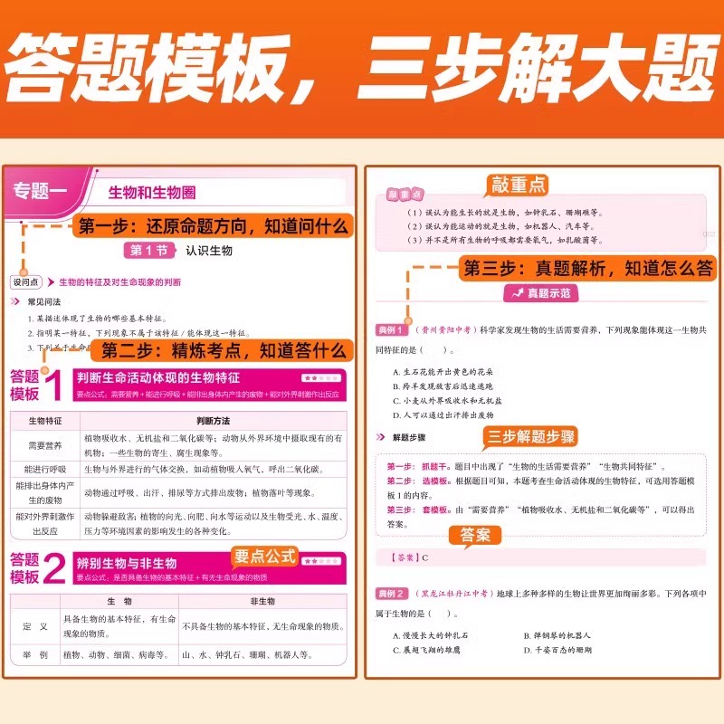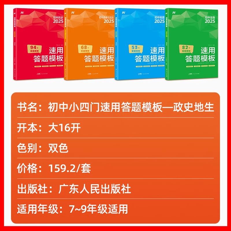 2025初中小四门速用答题模板七八九年级全国通用 八年级会考中考总复习资料书 初一二三道德与法治政治历史地理生物知识点汇总大全