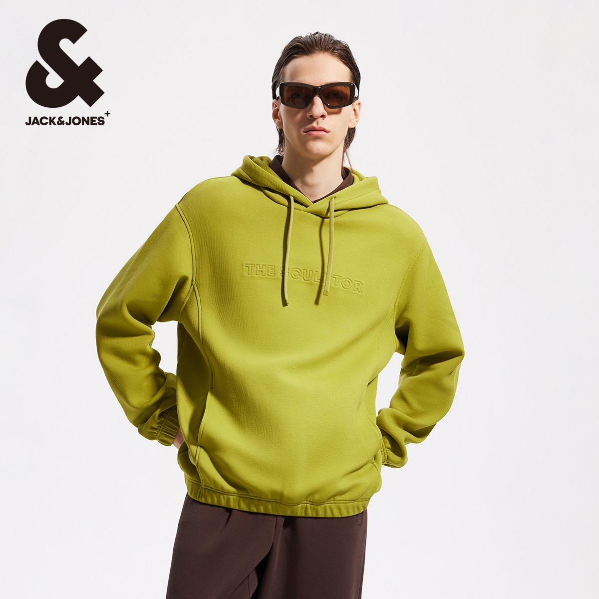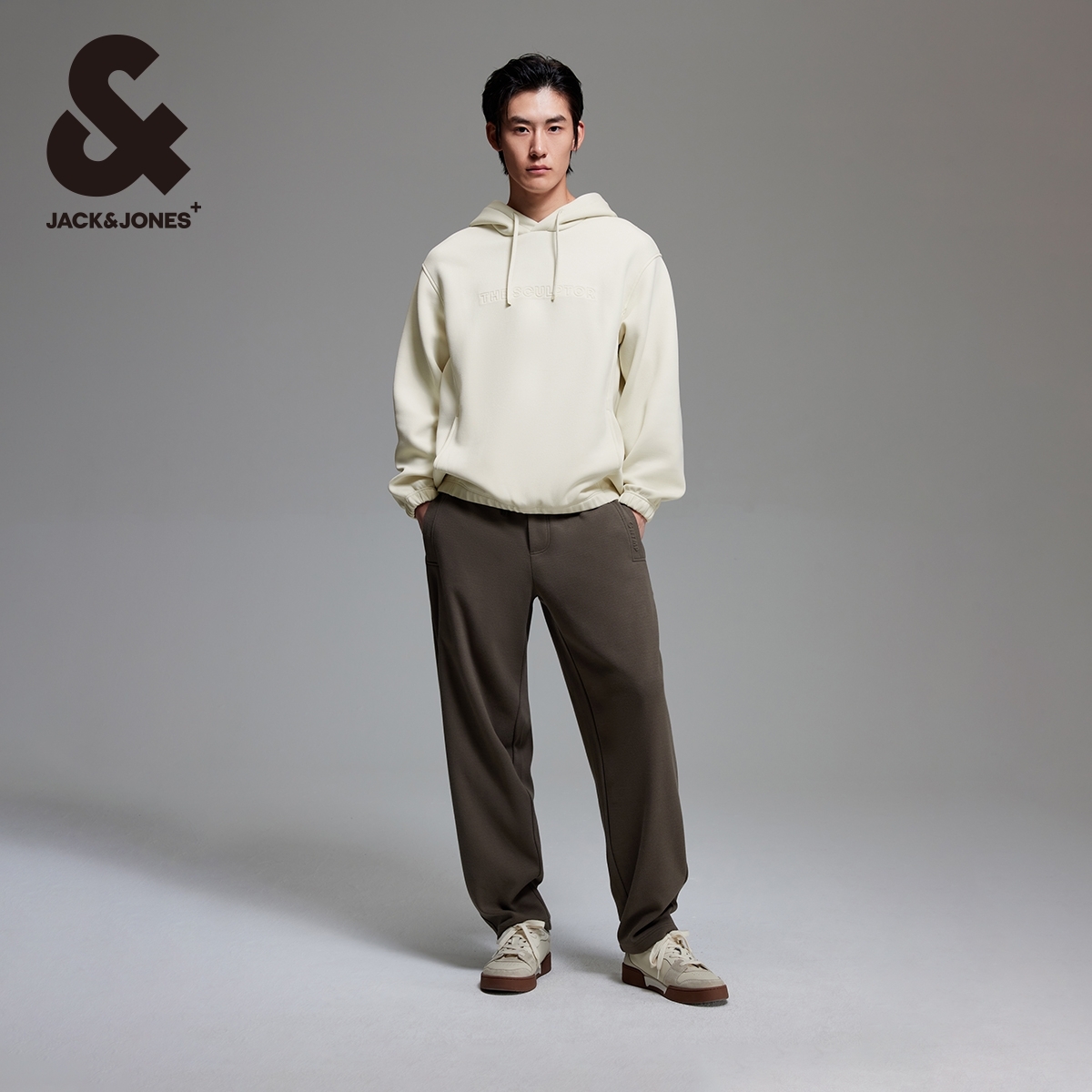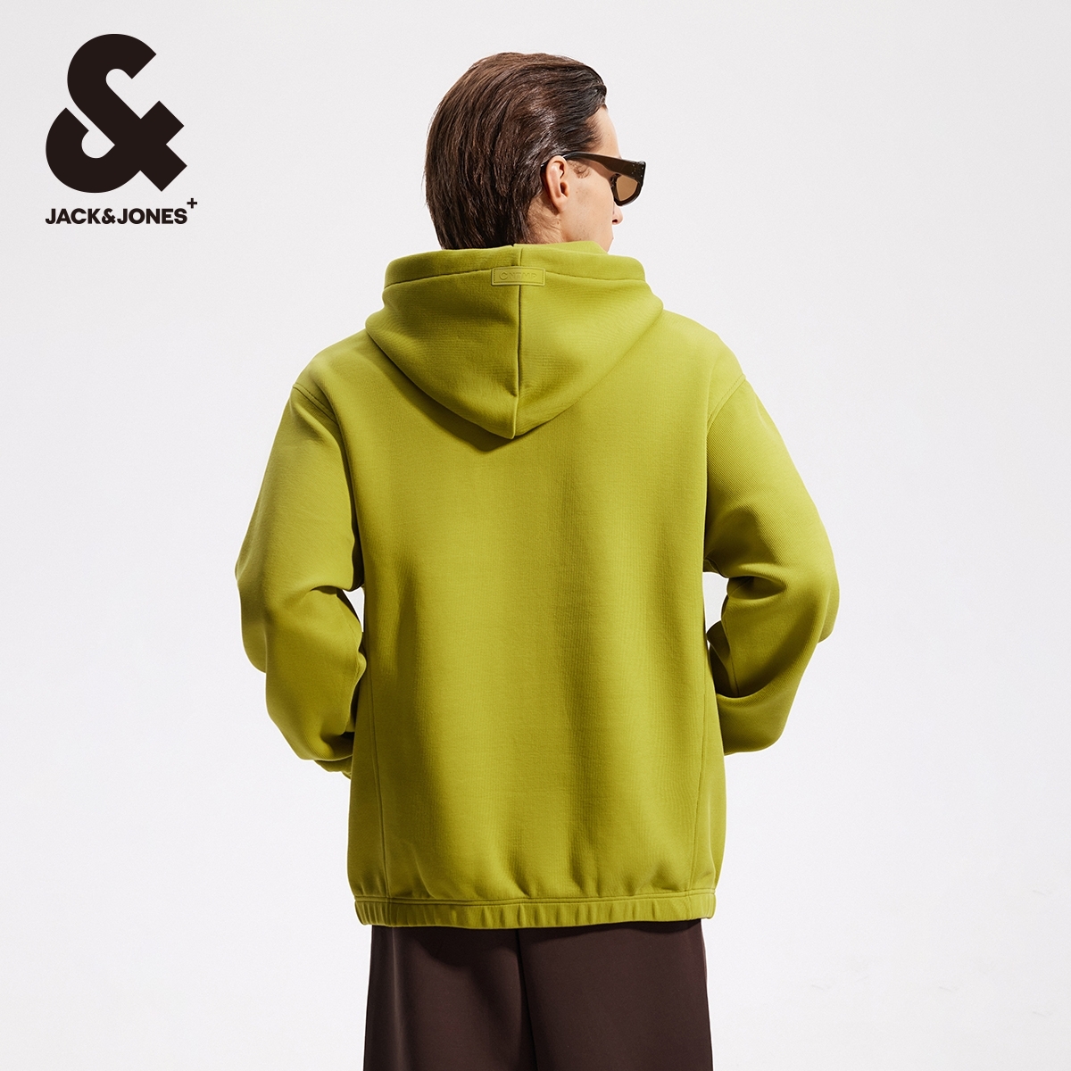 口底摆拼接设计男装 杰克琼斯24秋季 卫衣连帽字母刺绣弹力袖 男士 款