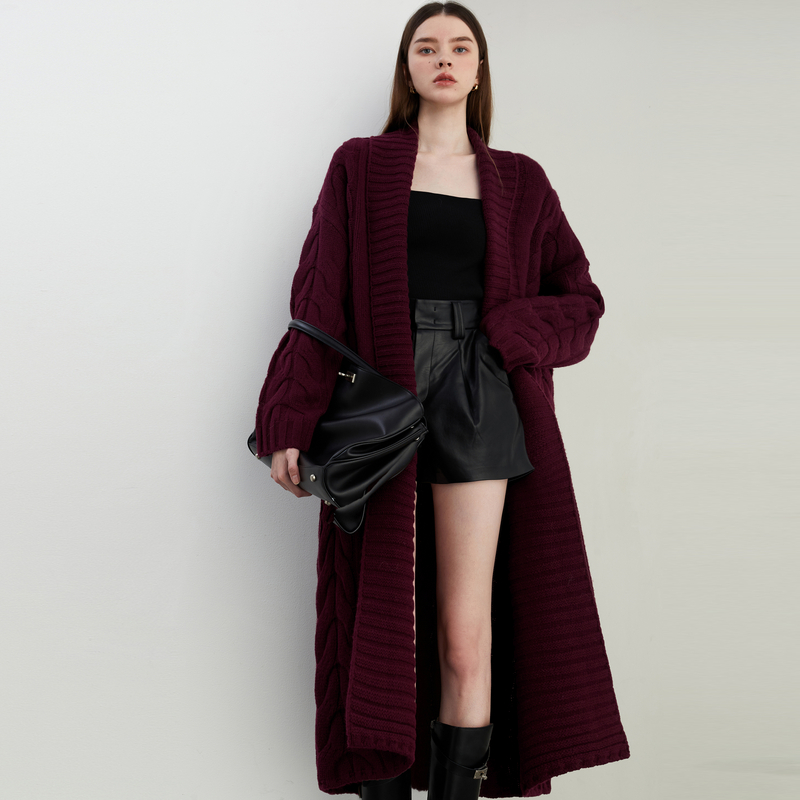 毛衣男女款 CLIMAX VISION慵懒松弛羊毛混纺复古绞花V领针织开衫