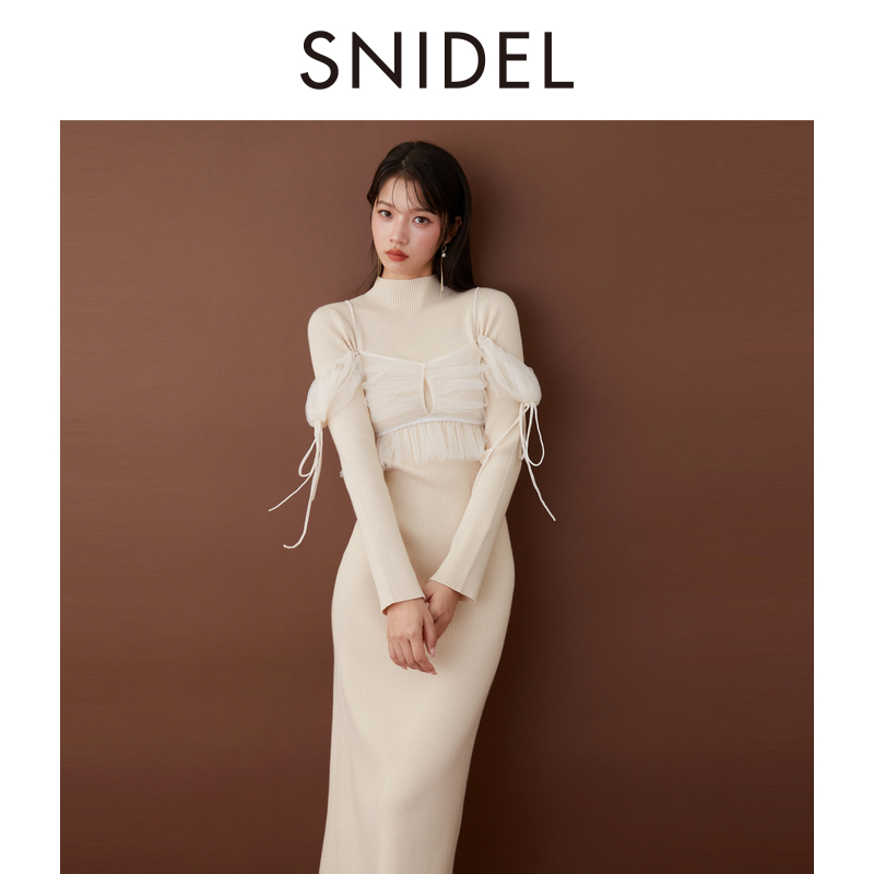 SNIDEL2025秋冬新品 露肩收腰连衣裙SWFO254179 优雅半高领泡泡袖