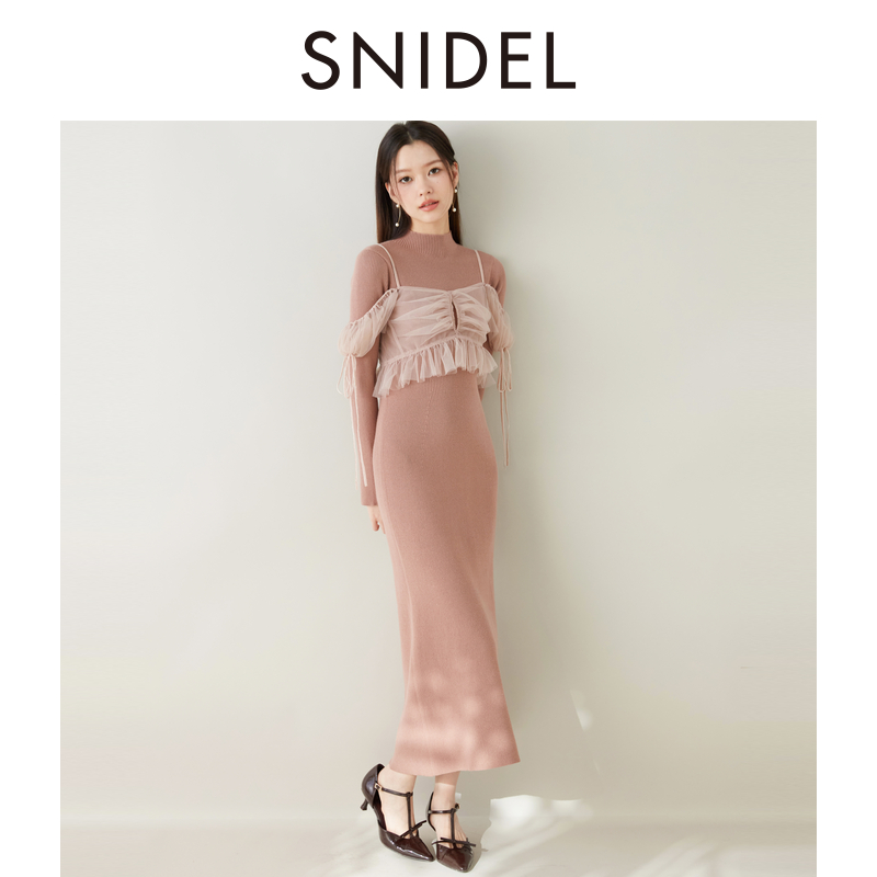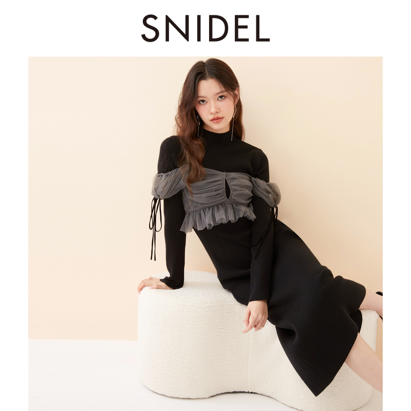 SNIDEL2025秋冬新品 圆领纯色针织连衣裙蕾丝钩花吊带SWNO254314