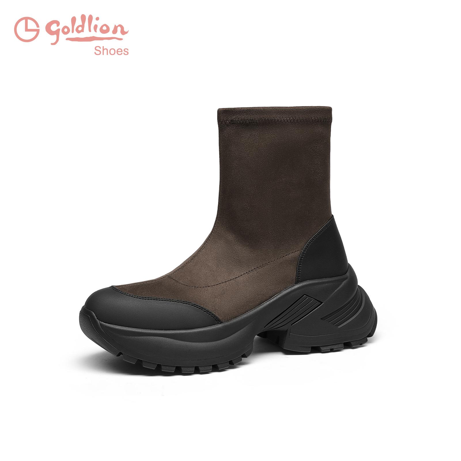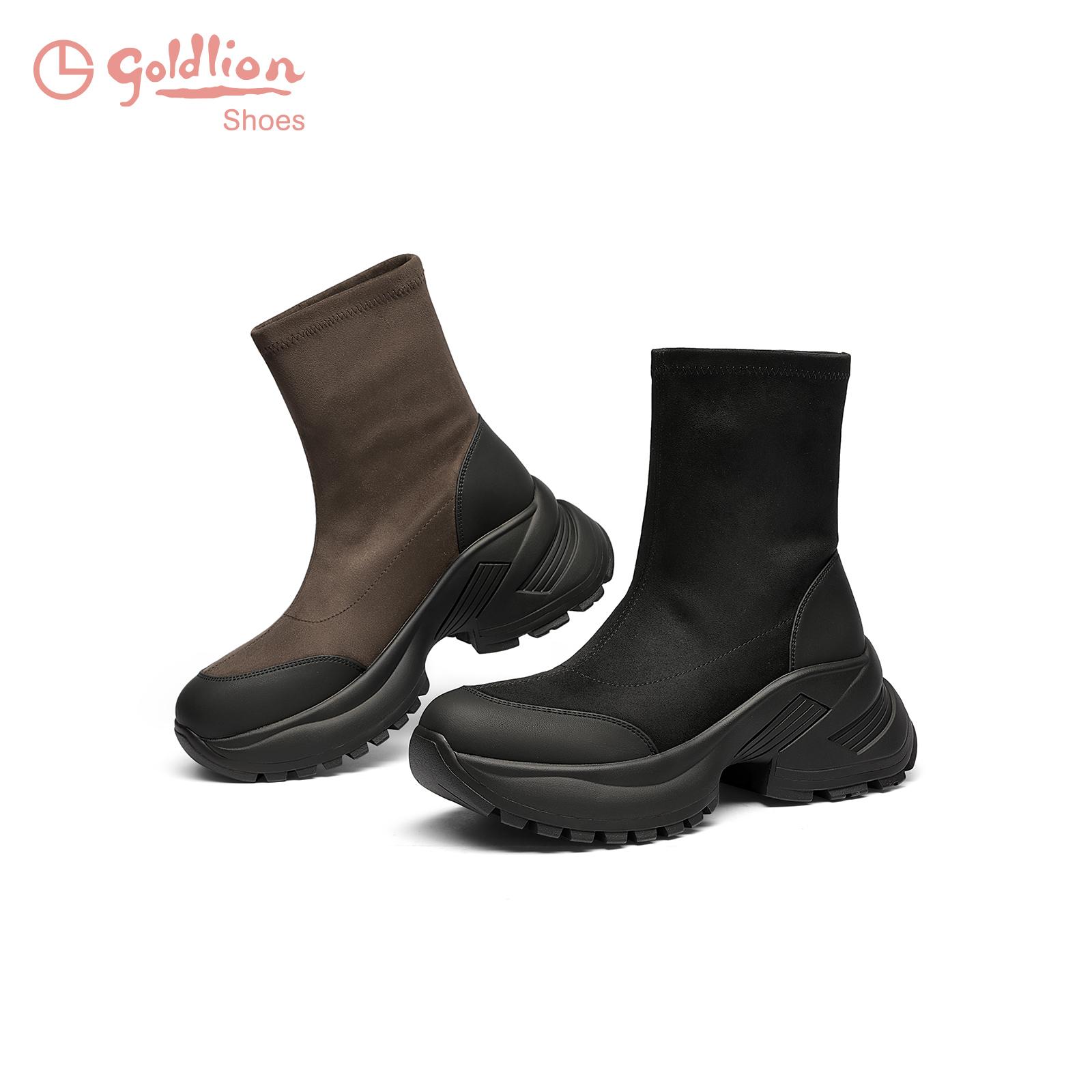 金利来女鞋 休闲运动短靴小个子厚底增高黑色瘦瘦靴女 2024秋冬新款