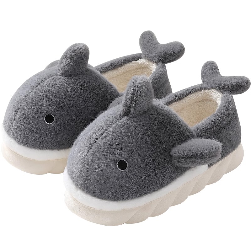 包跟鲨鱼可外穿情侣室内家居防滑暖毛绒厚底 冬季 踩屎感棉拖鞋 男士