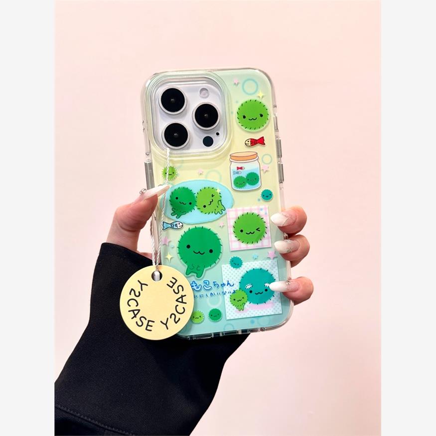 16硅胶防摔日韩小众女 13全包15 可爱苔藓球插画圆边双层适用苹果16promax手机壳iPhone15promax新款 保护套14