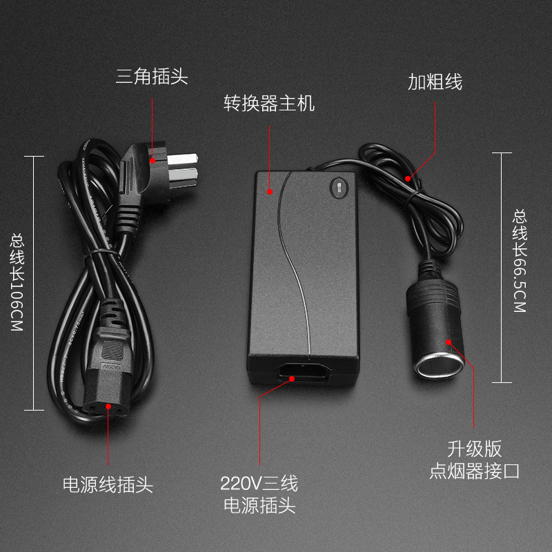 220V转12V点烟器口车载吸尘器充气泵冰箱转家用插头大功率转换器