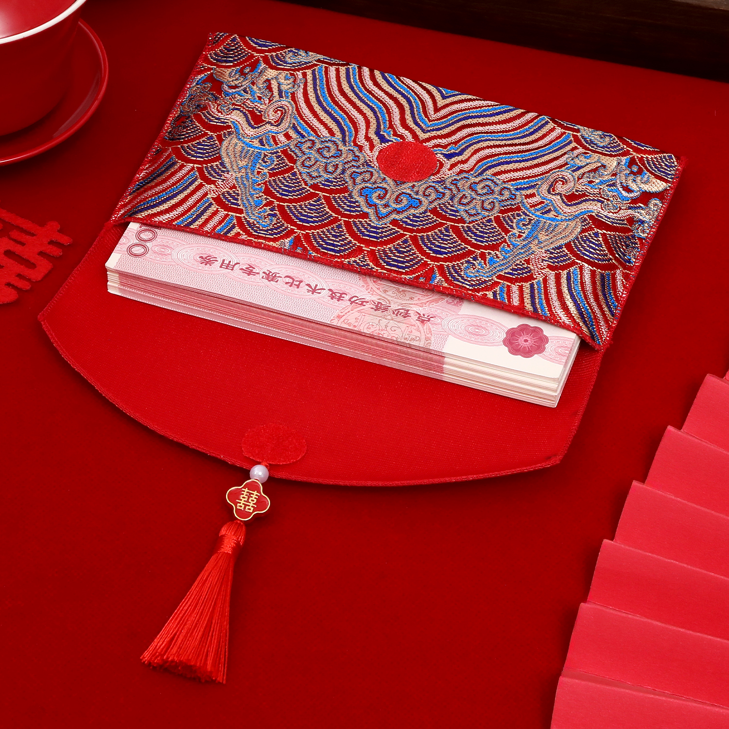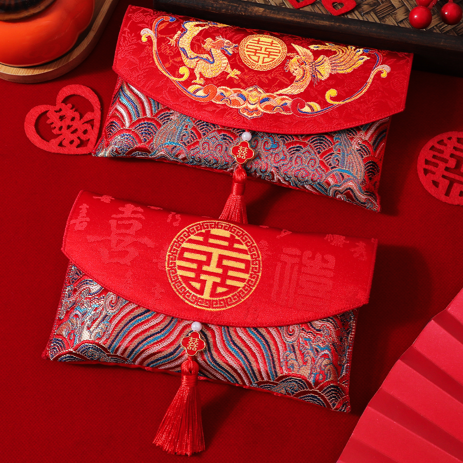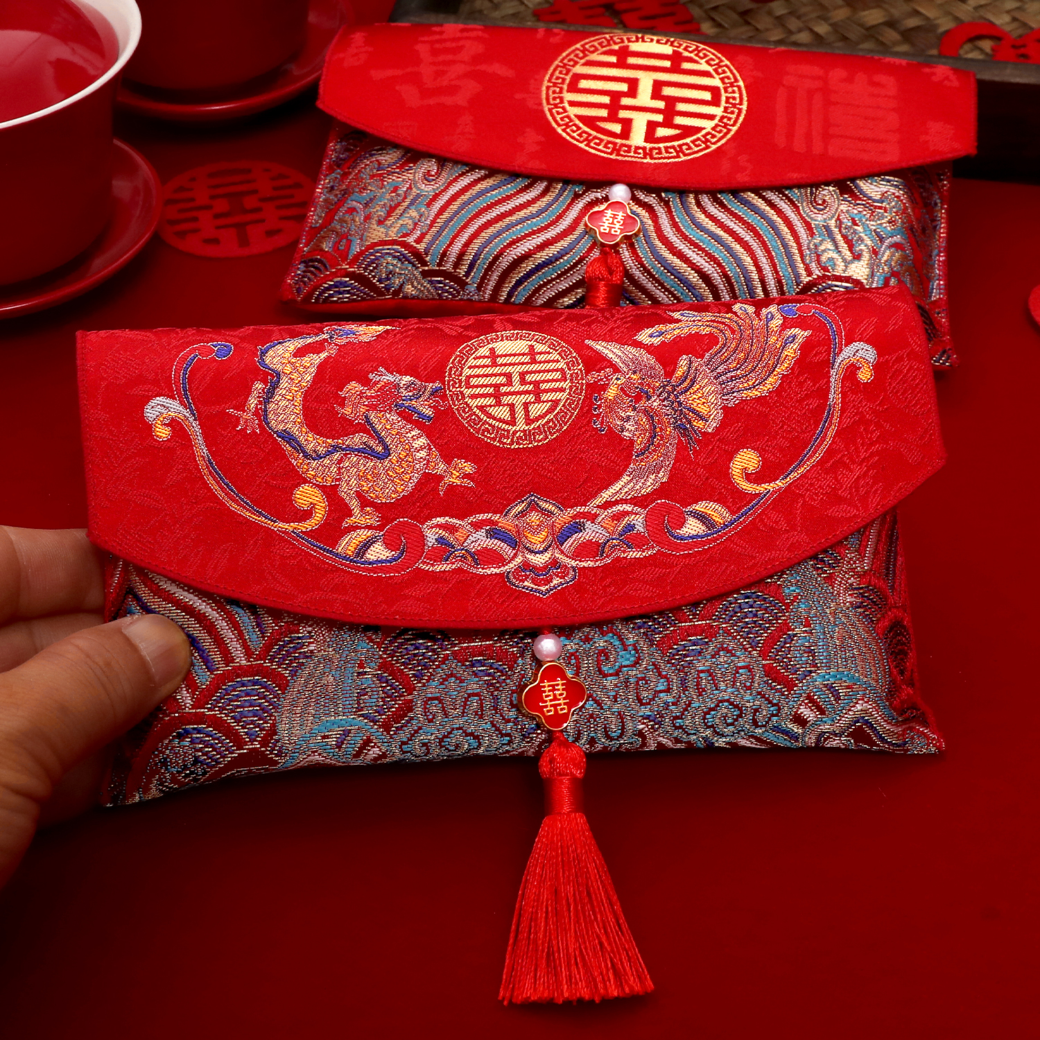 结婚专用布艺红包龙凤彩印利是封改口敬茶仪式 大红包 订婚刺绣万元