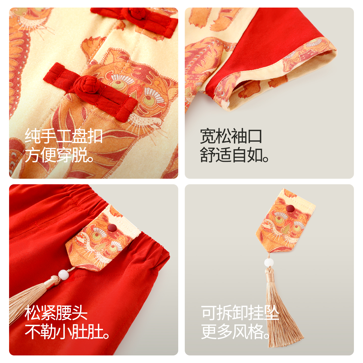 套装 龙喜年周岁礼服男宝宝国风印花百天百日宴短袖 分体唐装