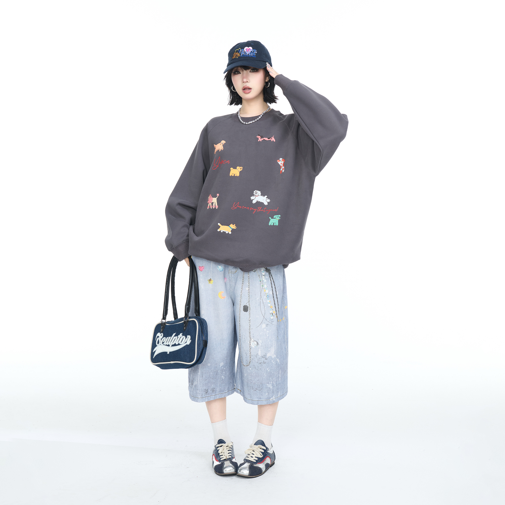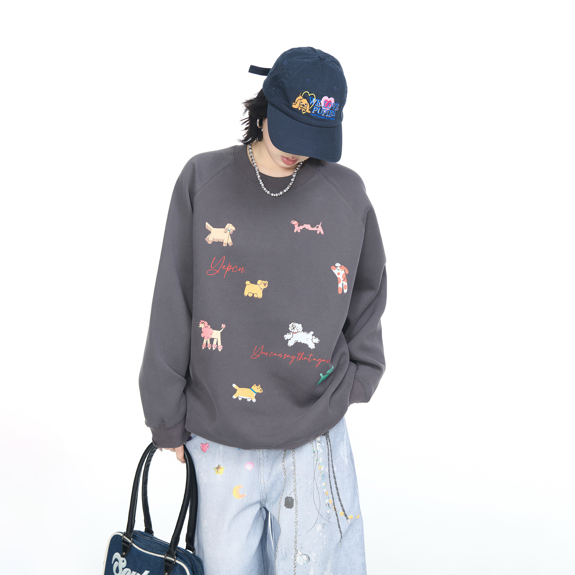 ins街头风上衣 卡通印花圆领卫衣女美式 YEP2025春秋新款 潮牌情侣款