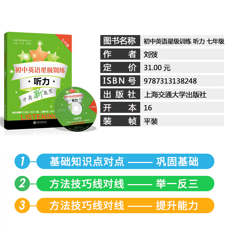 初中上海交通大学出版 含MP3光盘 社 一模二模考题 初中英语星级训练听力七年级7年级中考新题型初一英语听力练习题