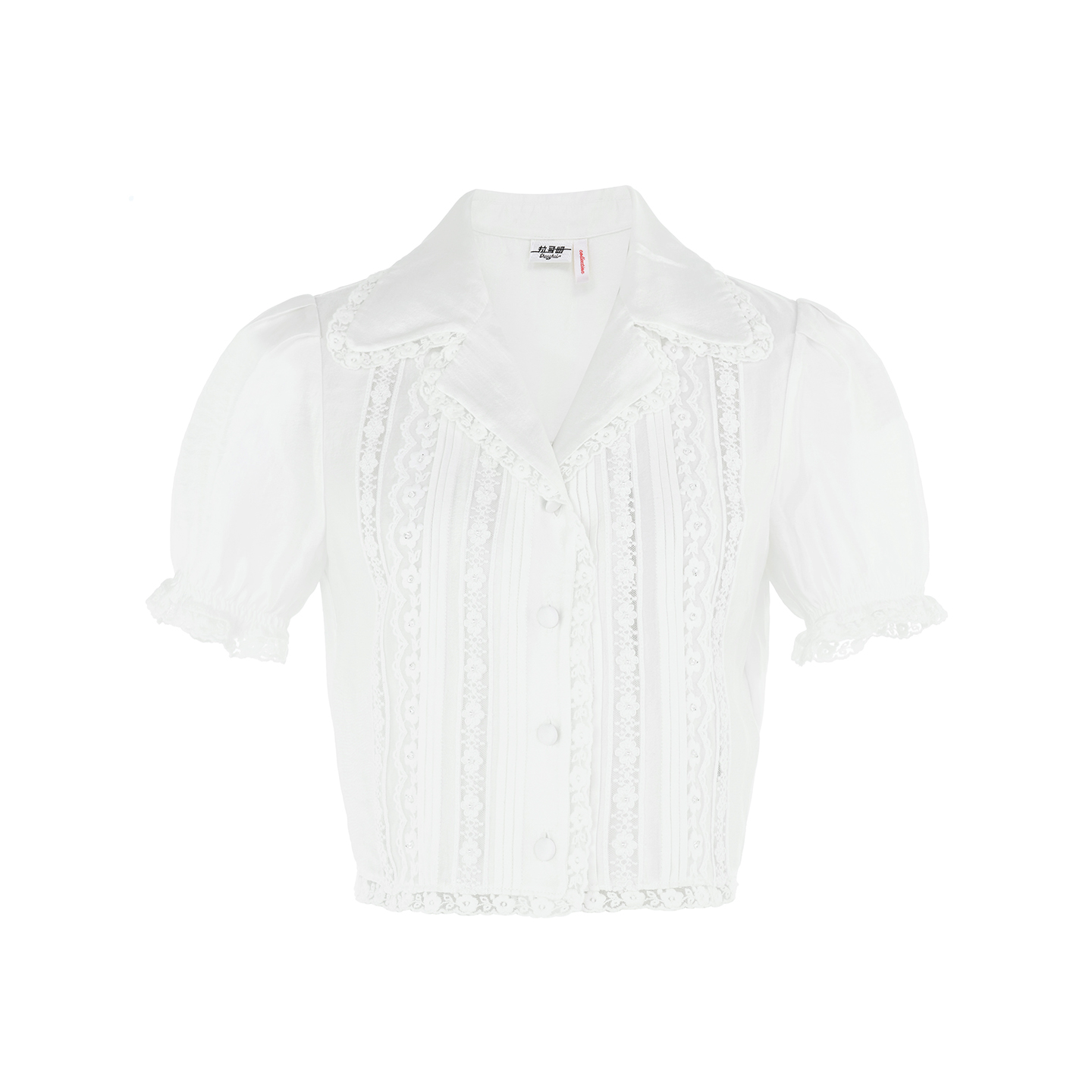新款 衬衫 时尚 上衣开衫 钉珠洛可可翻领短袖 lefame拉飞姆2025秋季