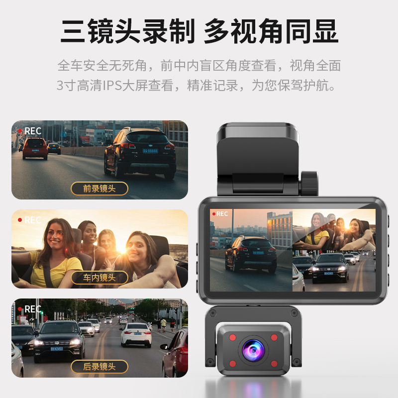 长城新品 4K三镜头记录仪360°手机互联高清夜视24小时停车监控