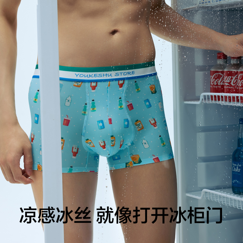裤 抑菌內裆无痕透气凉感薄款 衩平角抗菌无感丝滑轻薄 冰丝内裤 男士