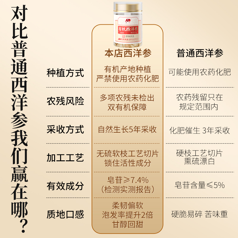 正品 吉林敖东 约1.2cm 足龄花旗参含片泡水 有机西洋参片60g
