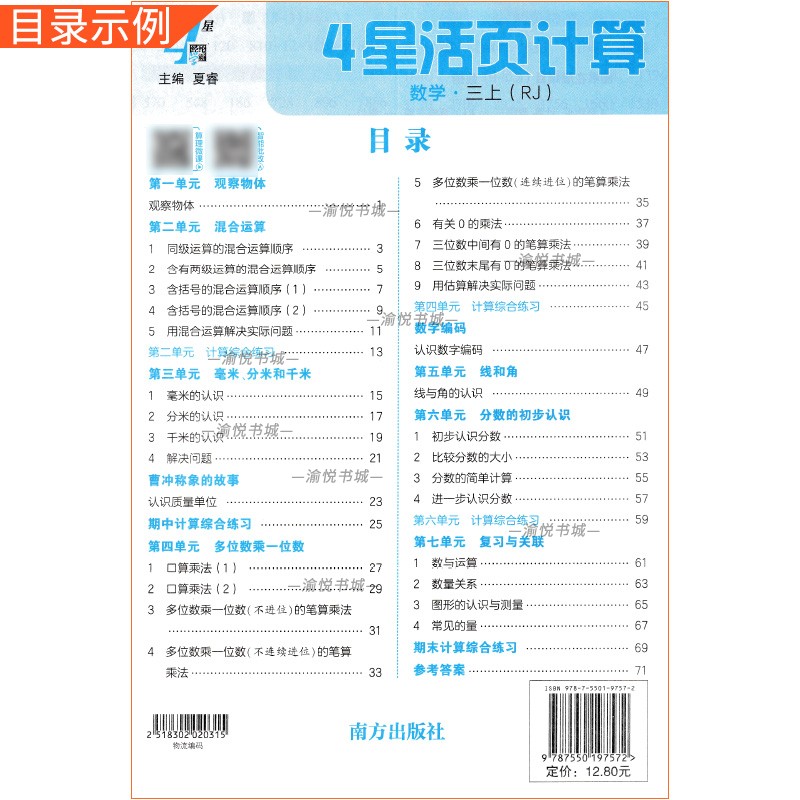 2025秋小学4星活页训练数学计算三年级上册人教版 课本同步训练活页易撕专项练习经纶学霸RJ