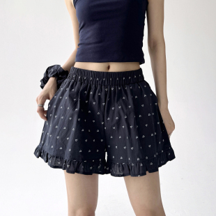 女韩系时尚 2025夏季 爱心花边抽绳松紧腰休闲短裤 女装 纯欲风 新款