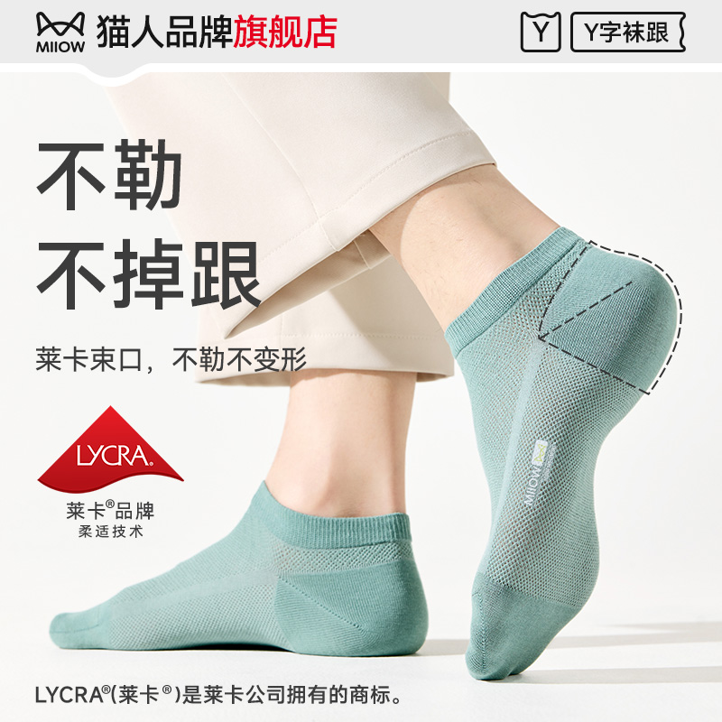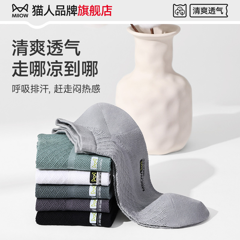 网眼透气吸汗短袜子 不掉跟浅口隐形纯棉防臭薄款 猫人男士 船袜夏季