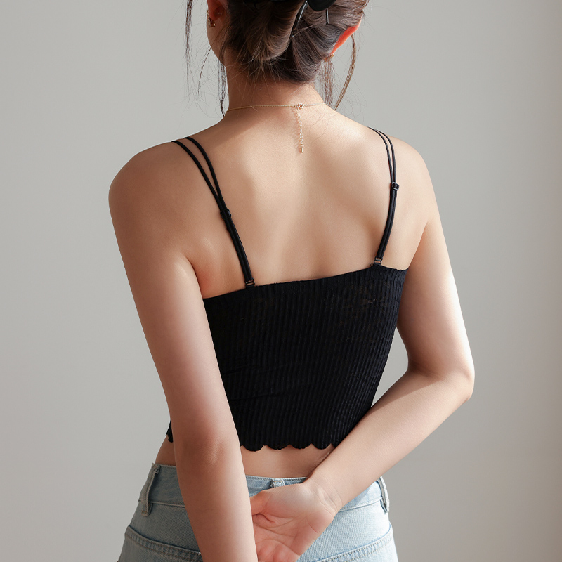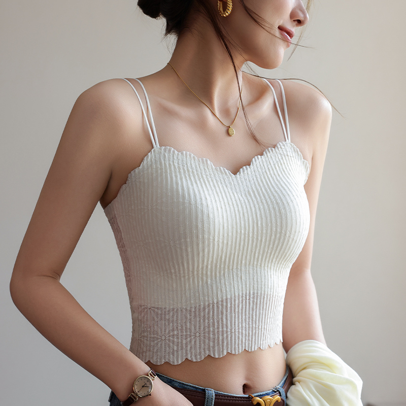 蕾丝吊带背心女内搭带胸垫文胸一体夏季 外穿打底上衣 抹胸辣妹短款