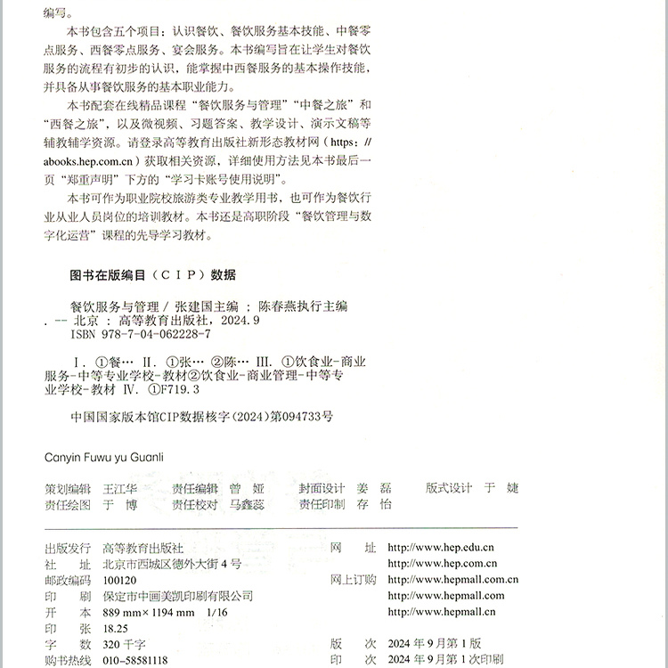 高教版 陈春燕主编 中高职一体化旅游类专业酒店管理与数字化运营专业教材餐饮行业从业人员岗位培训教材 张建国 餐饮服务与管理