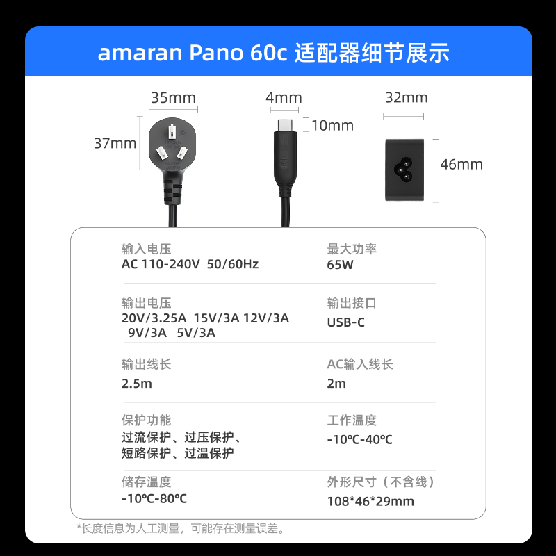 C带自锁充电线 爱图仕 双USB 电源适配器 适用艾蒙拉Pano系列 艾蒙拉Pano60c120c