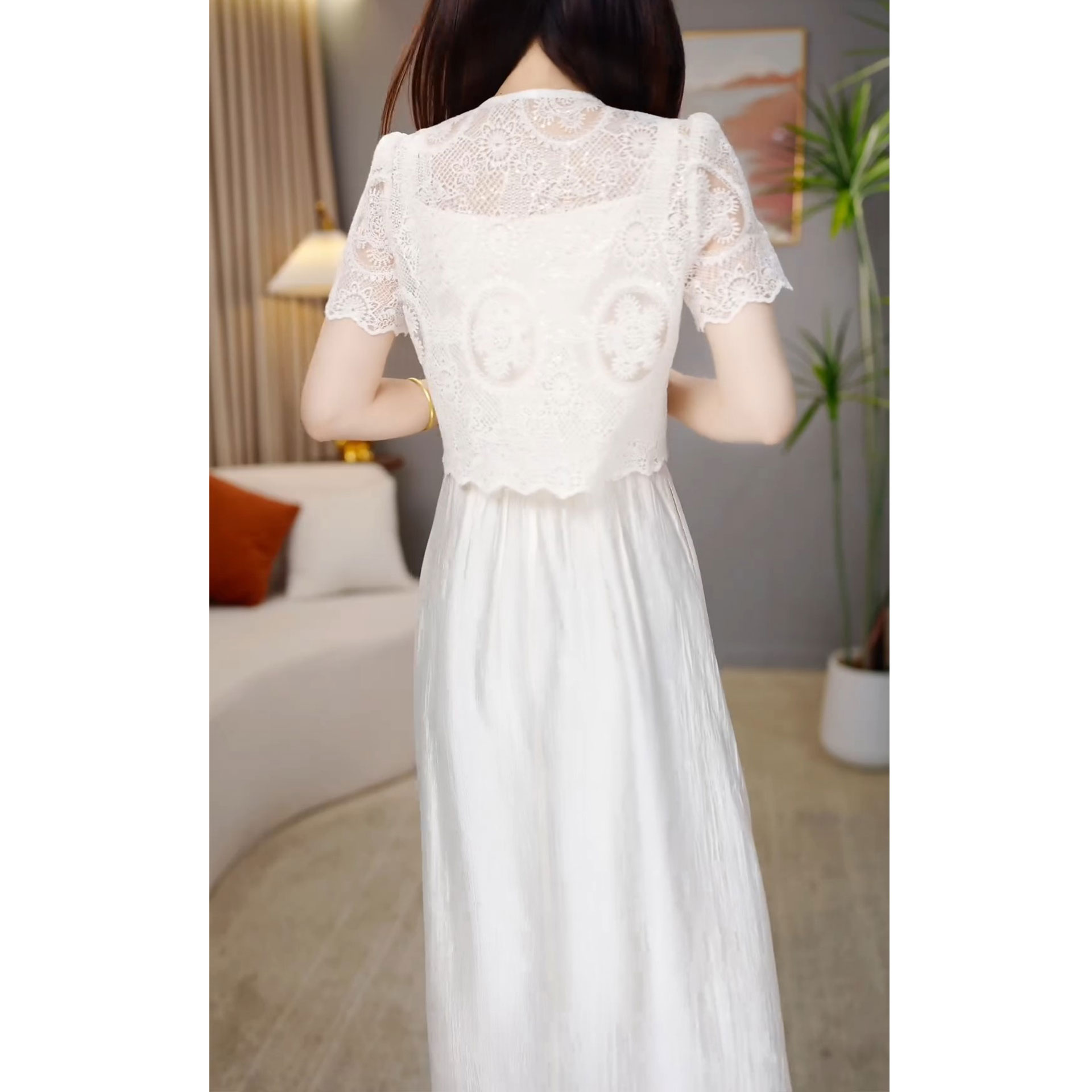 新款 女夏季 高级感收腰连衣裙外套两件套 减龄休闲套装 优雅气质时尚