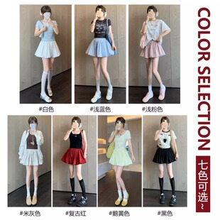 料春秋百搭小个子短裙裤 百褶裙女夏款 半身裙纯色高腰a字显瘦西装