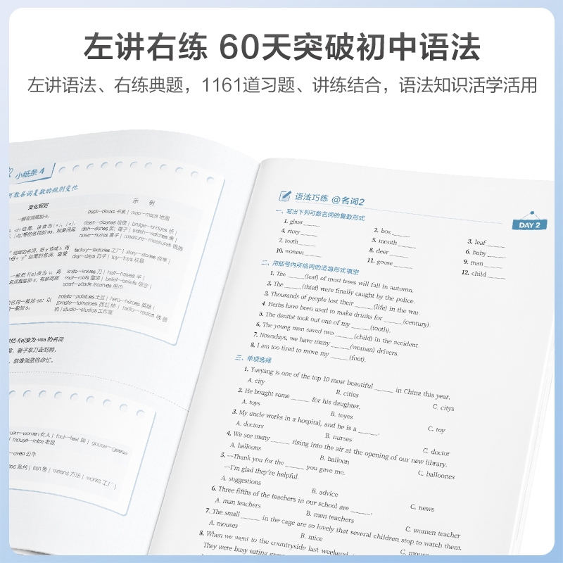 2026新版 星火英语初中语法小纸条英语轻中考知识点初一初二初三英语语法专项训练习题七年级八九年级语法书120词汇考点口诀作文