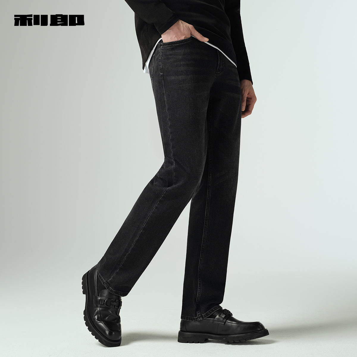 海澜之家轻商务加绒加厚牛仔裤 子男士 秋冬季 保暖直筒长裤 新款 HLA