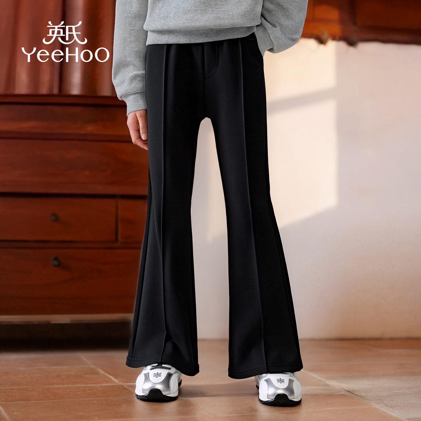 2025秋冬款 英氏女童喇叭裤 保暖休闲高弹高腰瑜伽运动长裤 加绒