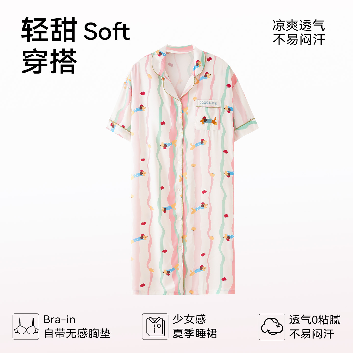 蕉内棉棉520Sleep女5A抑菌棉莫印花Pets 睡裙 Pets凉感不粘毛短袖