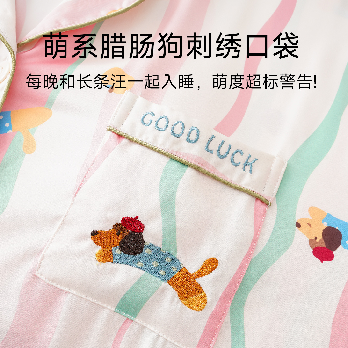 睡衣带胸垫家居服 大码 猫人纯棉睡裙女春秋季 可爱卡通腊肠狗种长款