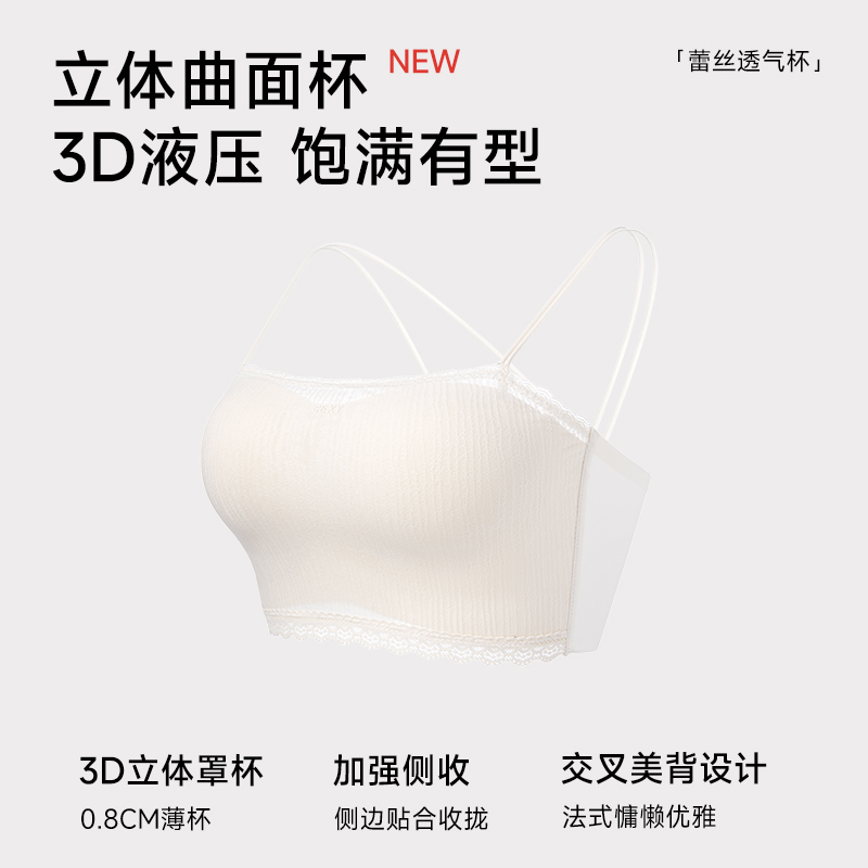 猫人吊带美背内衣女2025夏季 蕾丝细肩带小胸抹胸文胸一体背心 薄款
