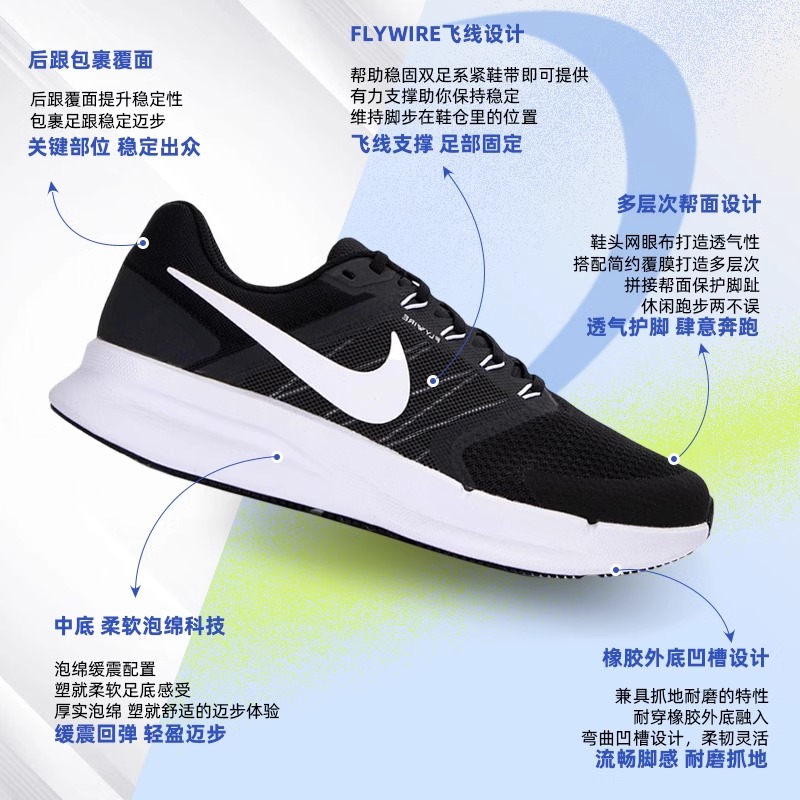 缓震轻便透气公路跑步鞋 Nike耐克男鞋 网面休闲黑色运动鞋 新款 秋季
