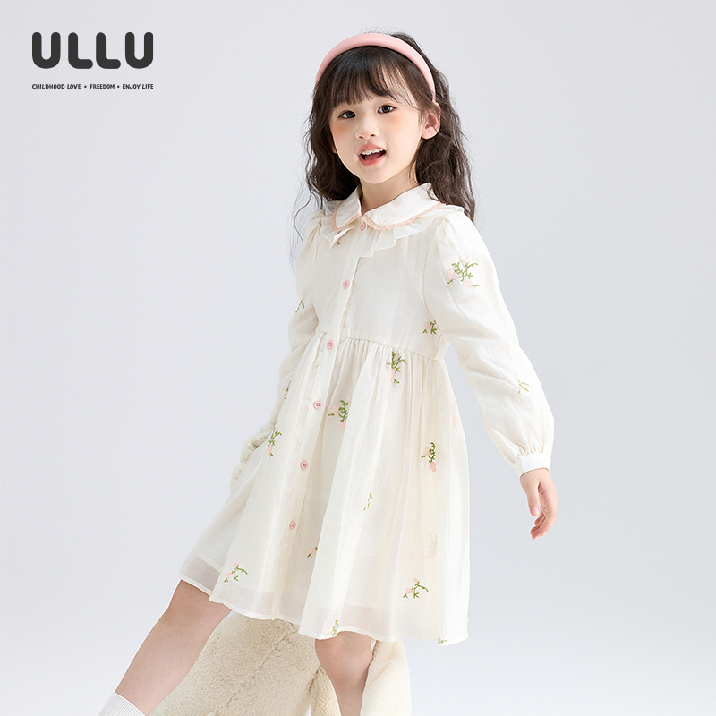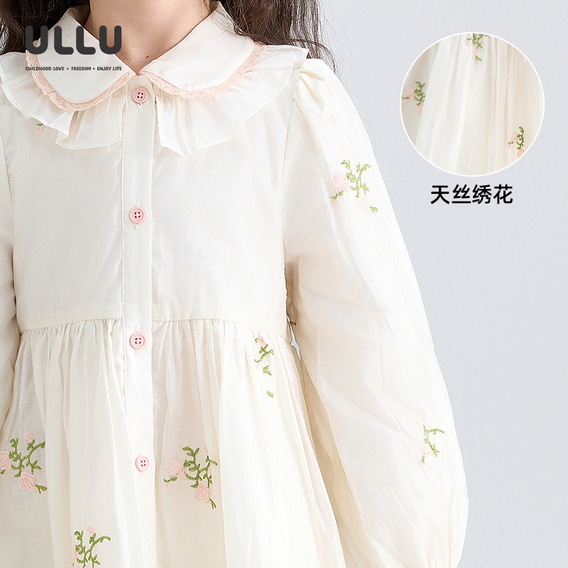 收腰A字裙中长裙白色连衣裙 气质优雅方领泡泡袖 ONLY2025夏季 新款