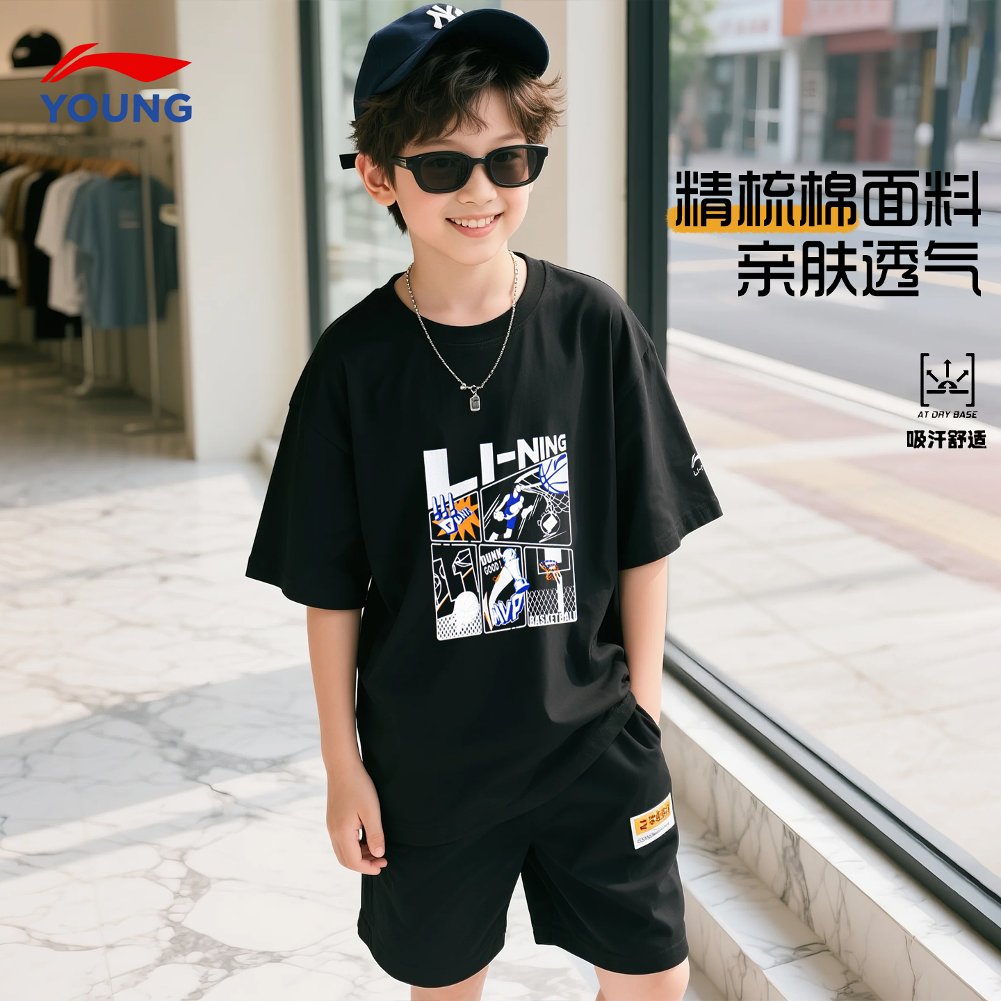 青少年夏装 李宁男童短袖 男女大童纯棉透气半袖 新款 儿童t恤25夏季