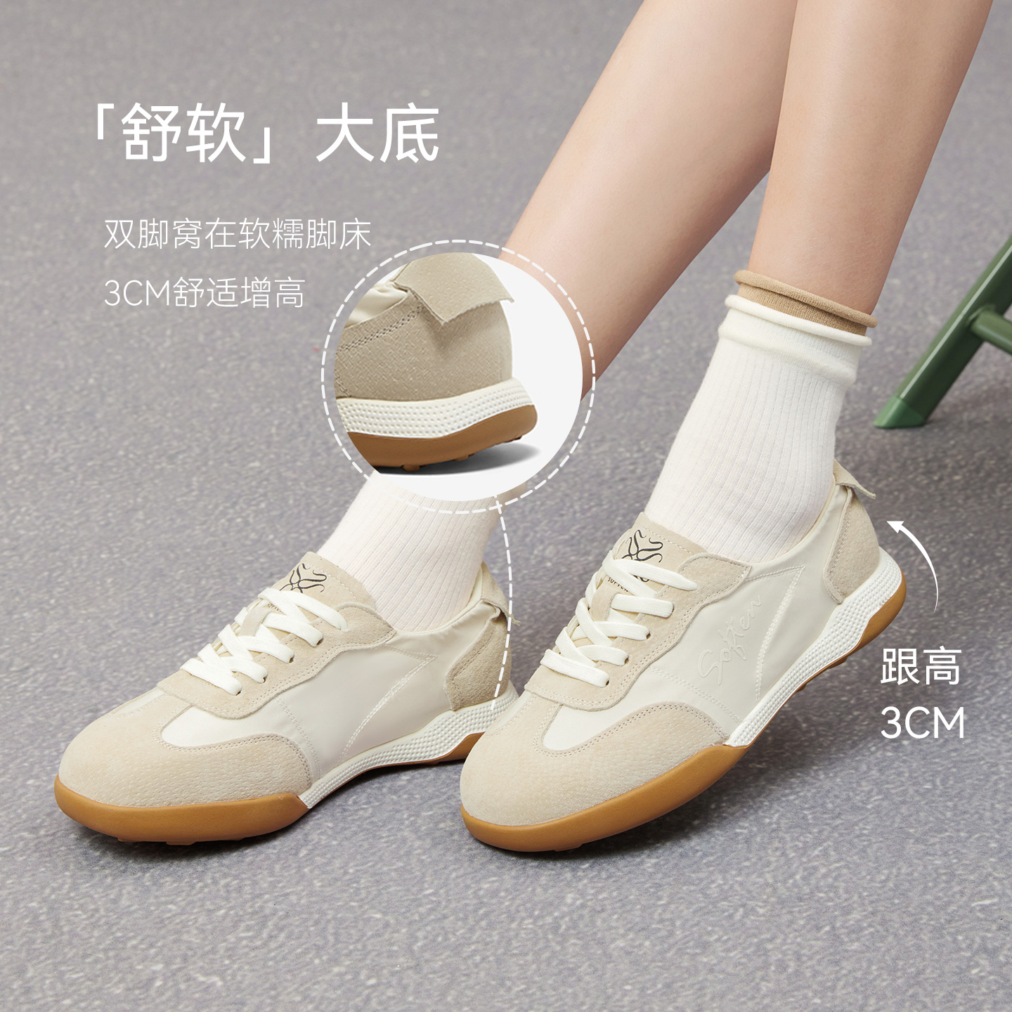 女款 增高休闲运动板鞋 2025年秋季 轻便百搭爆款 新款 环球厚底德训鞋