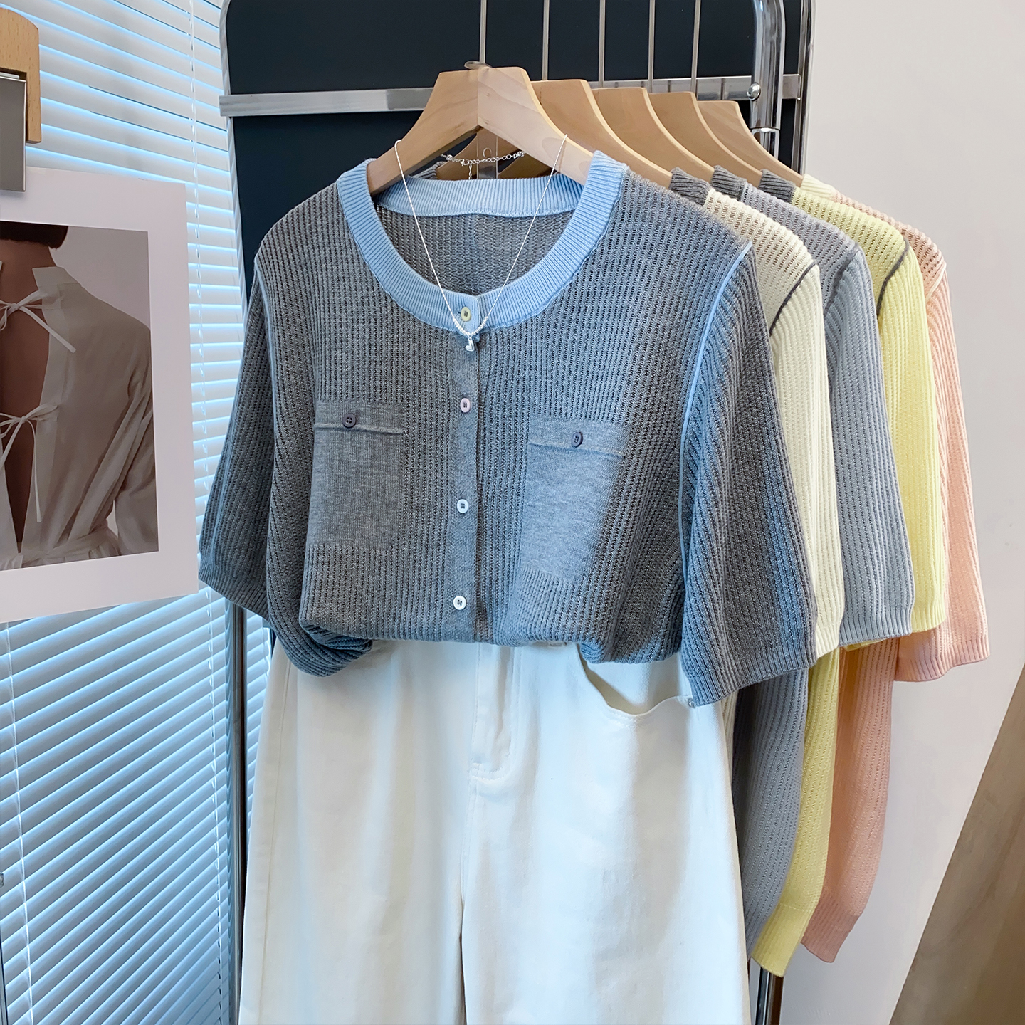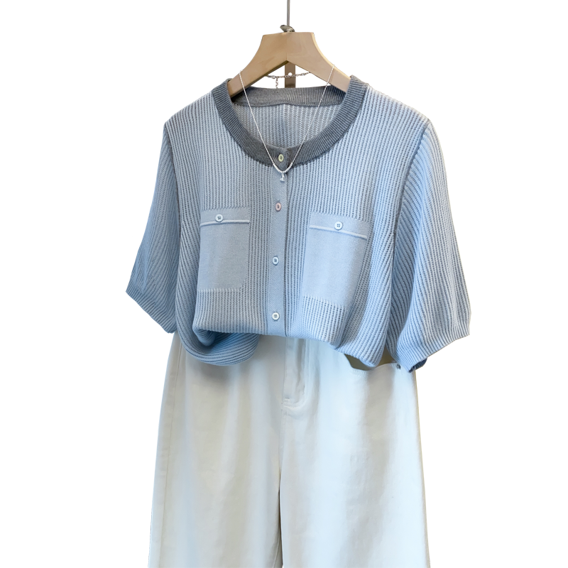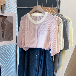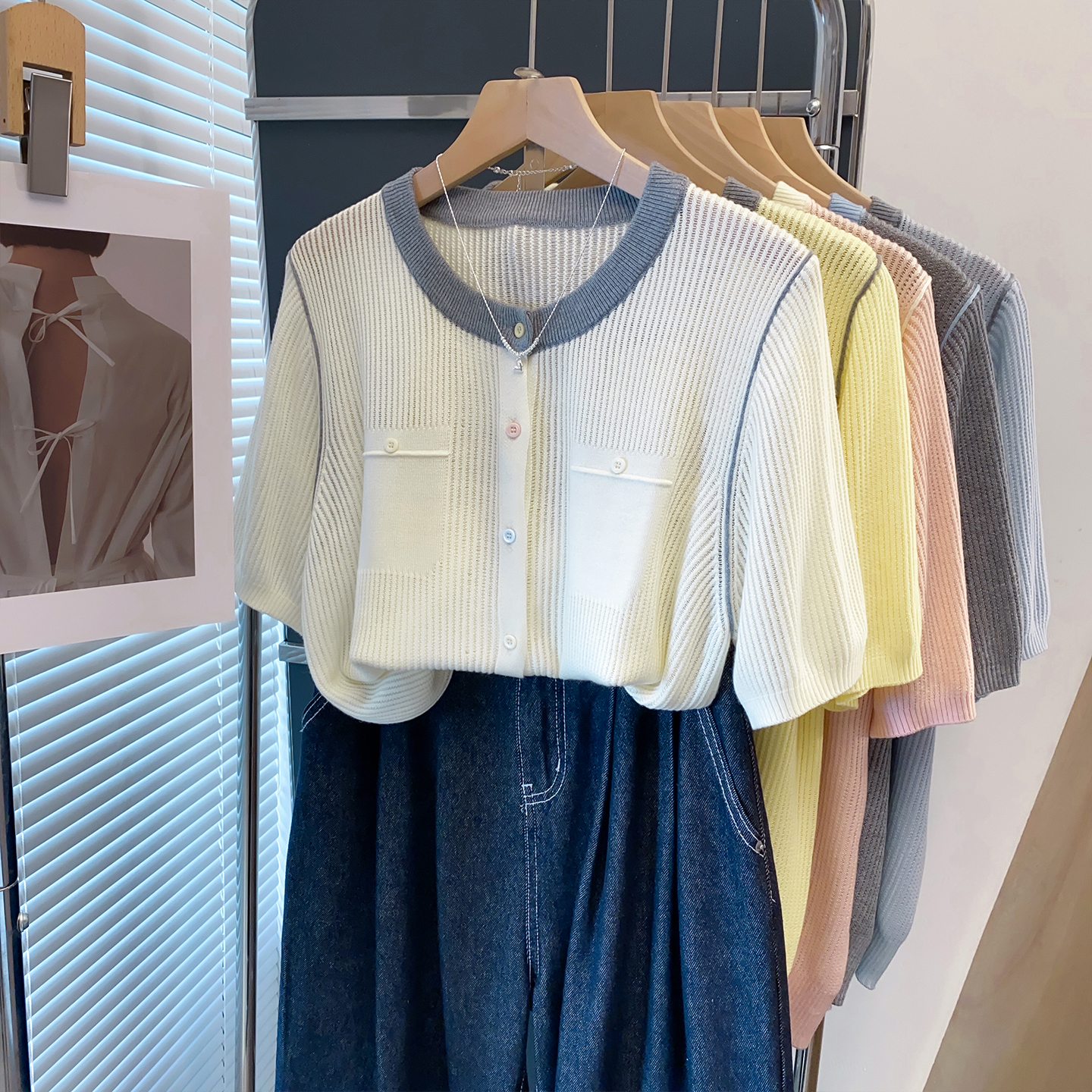 t恤衫 圆领镂空针织开衫 短袖 宽松慵懒风上衣薄款 潮 女2025初秋新款