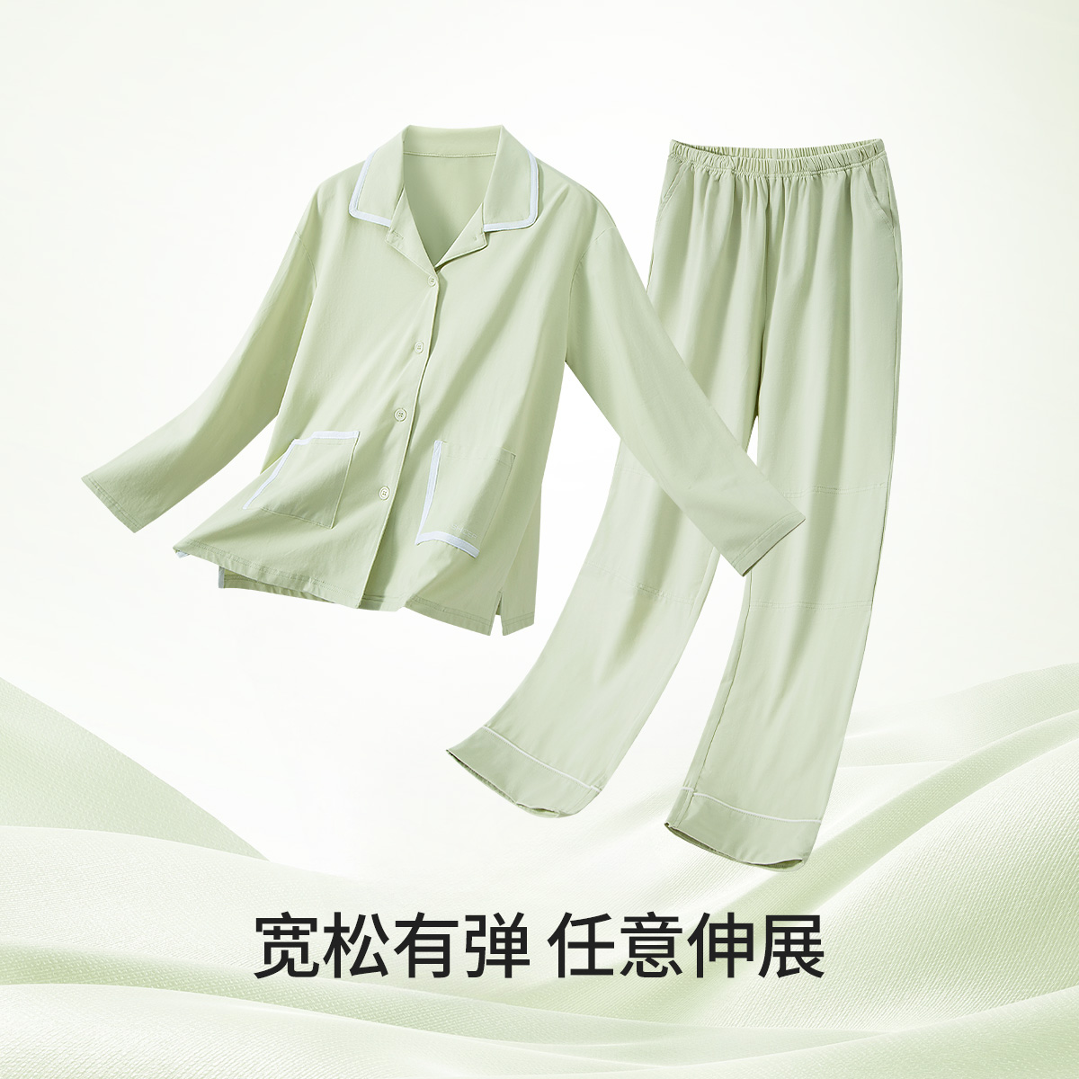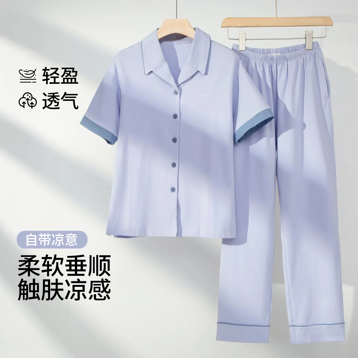 长裤 女士翻领短袖 柔软舒适显瘦睡衣S 家居服套装 茜施尔新款