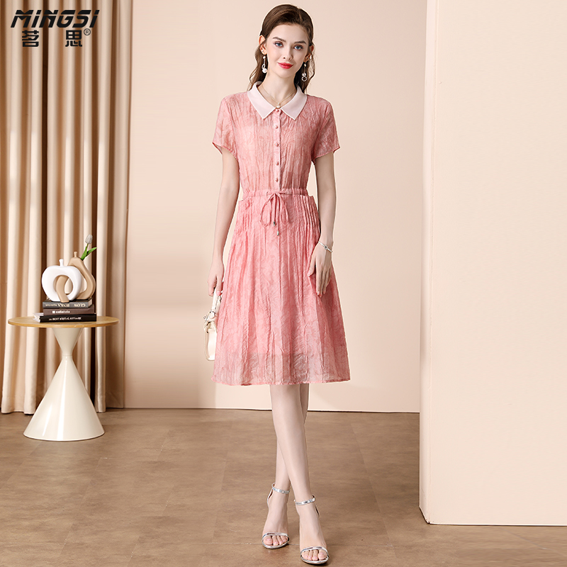 COCOBELLA重工对丝提花长袖 雪纺连衣裙女度假风束腰茶歇裙FR157