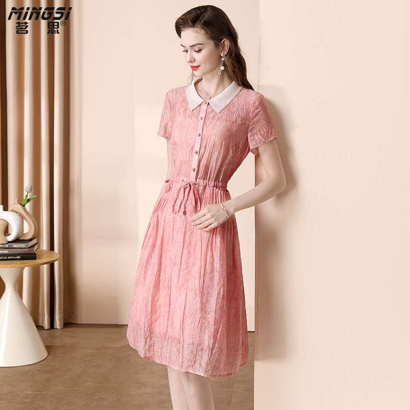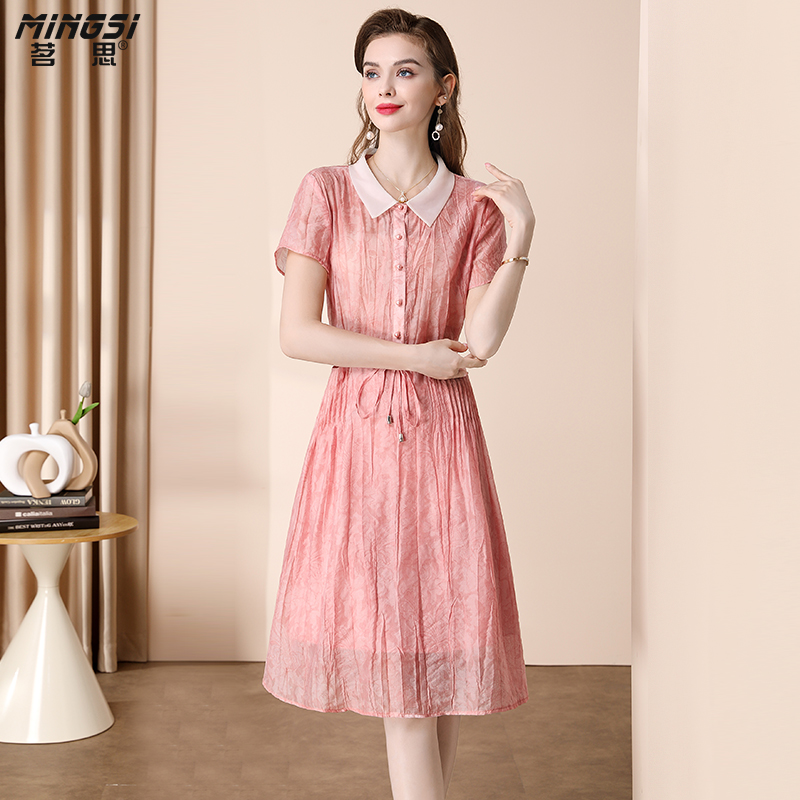包臀裙长裙 连衣裙女2025春秋收腰气质裙子中长款 紫色衬衫 领长袖