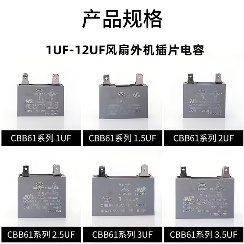 2.2 2.5 CBB61空调铁片电容1.2 1.8 5UF450V吊扇风扇 1.5