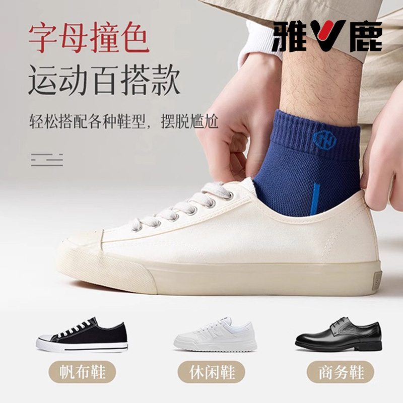 雅鹿袜子男秋冬季 吸汗防臭袜抗菌运动长袜 吸汗透气网眼中筒袜男士