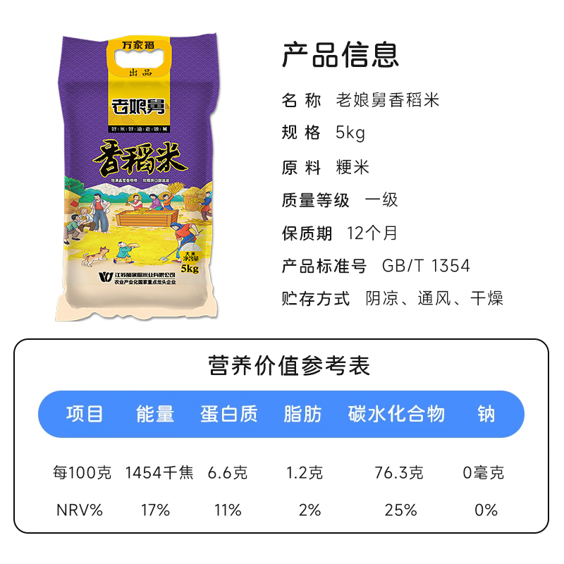 老娘舅当季 2袋一级粳米家用新米现磨软香米珍珠米 新米香稻米5kg