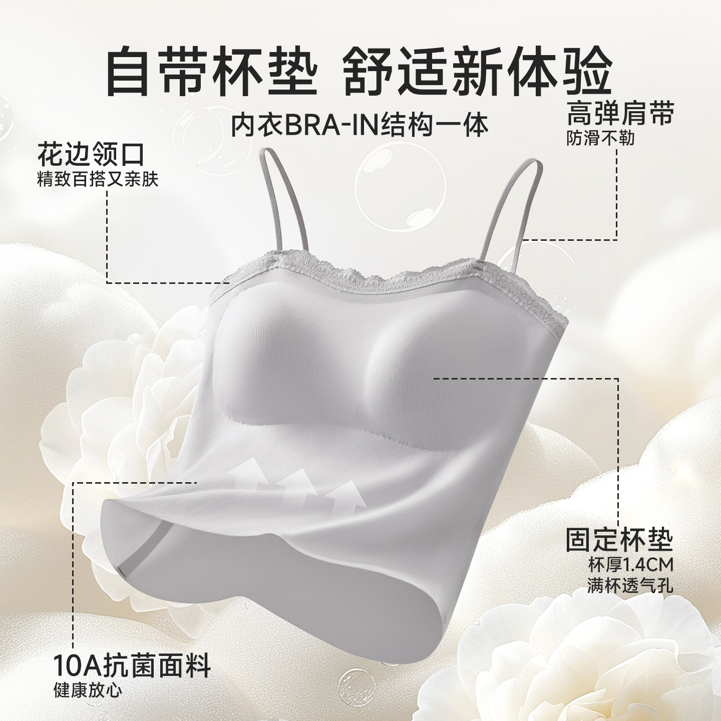 猫人吊带背心女带胸垫2025新款 内衣美背上衣 夏外穿打底t恤一体式