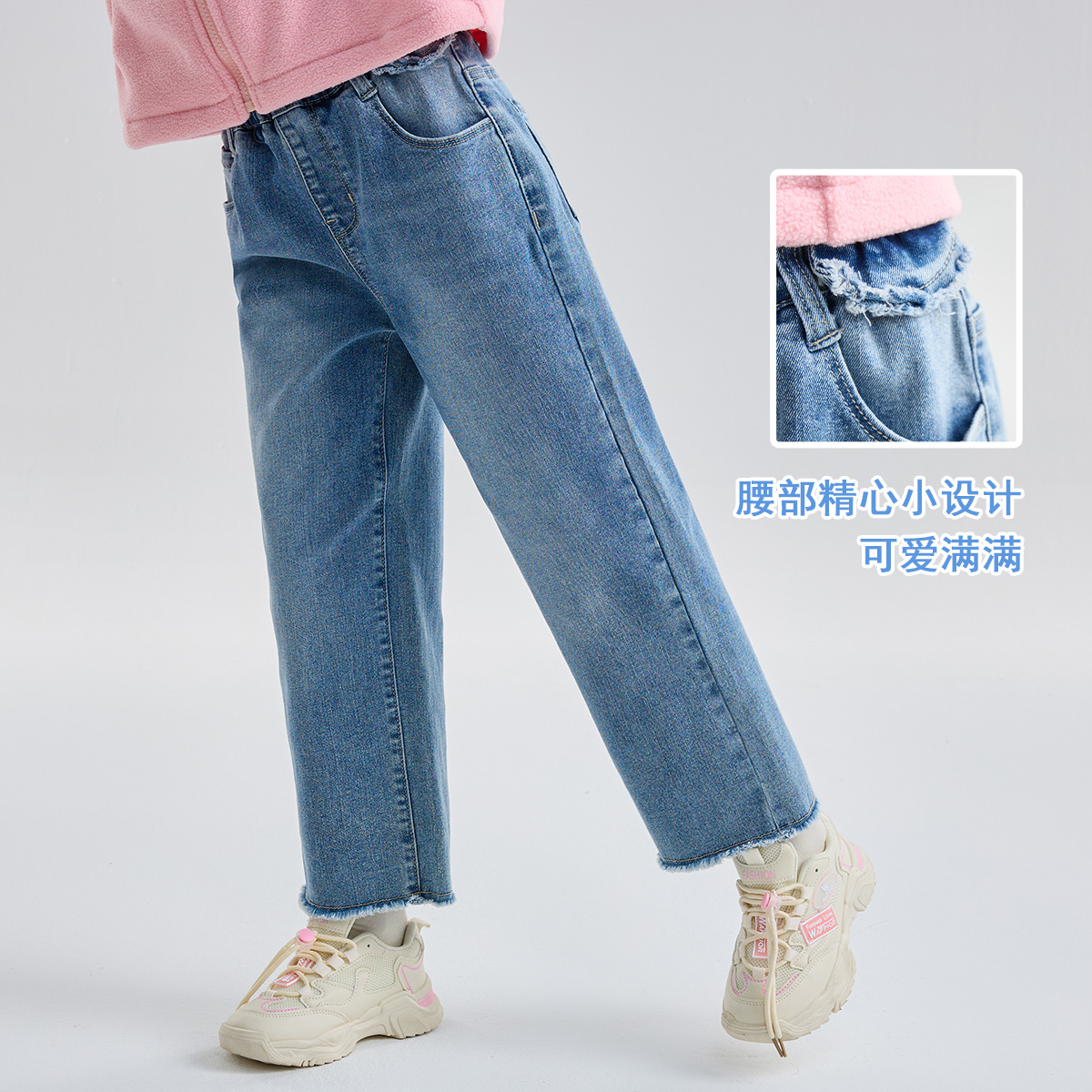 女童裤 儿童裤 子2025秋冬新款 牛仔裤 子 中大童直筒阔腿裤 植木童装