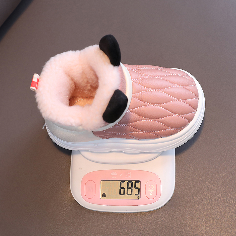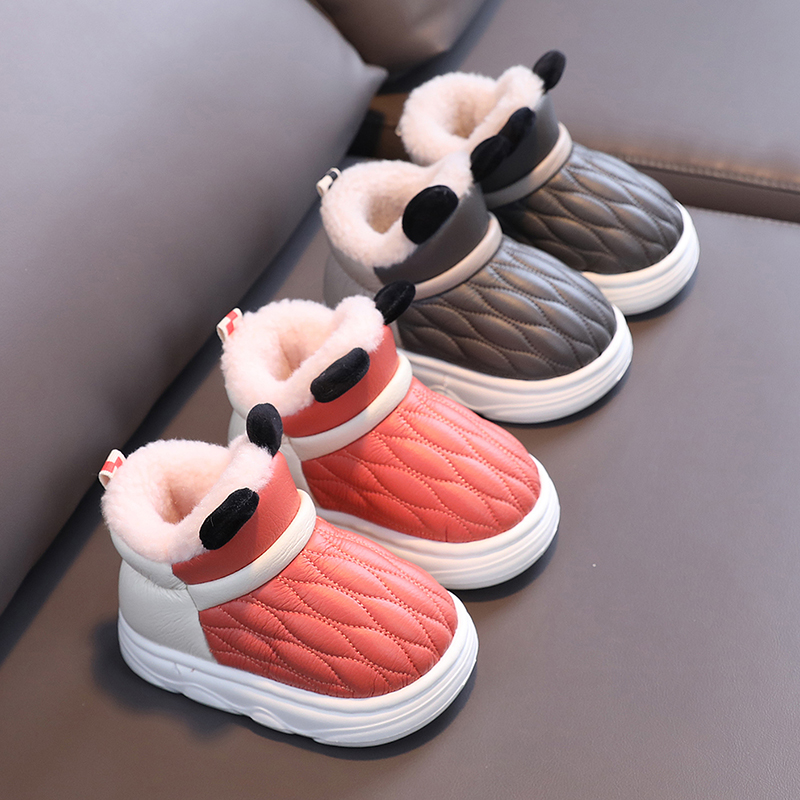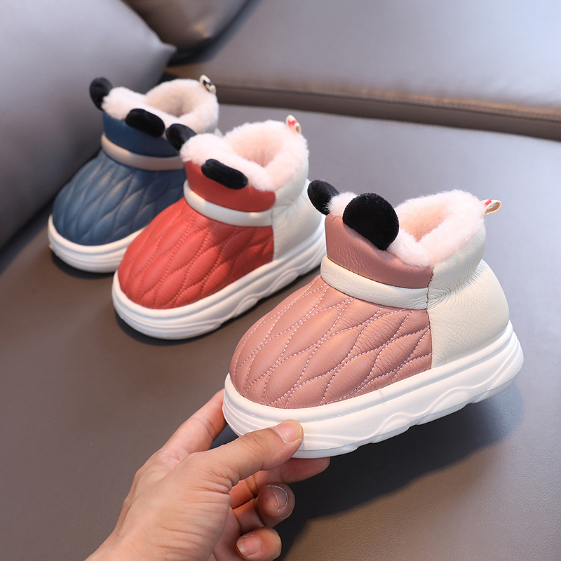 女小大童高帮保暖棉鞋 男宝宝室内PU皮面防水家居鞋 冬季 儿童棉拖鞋