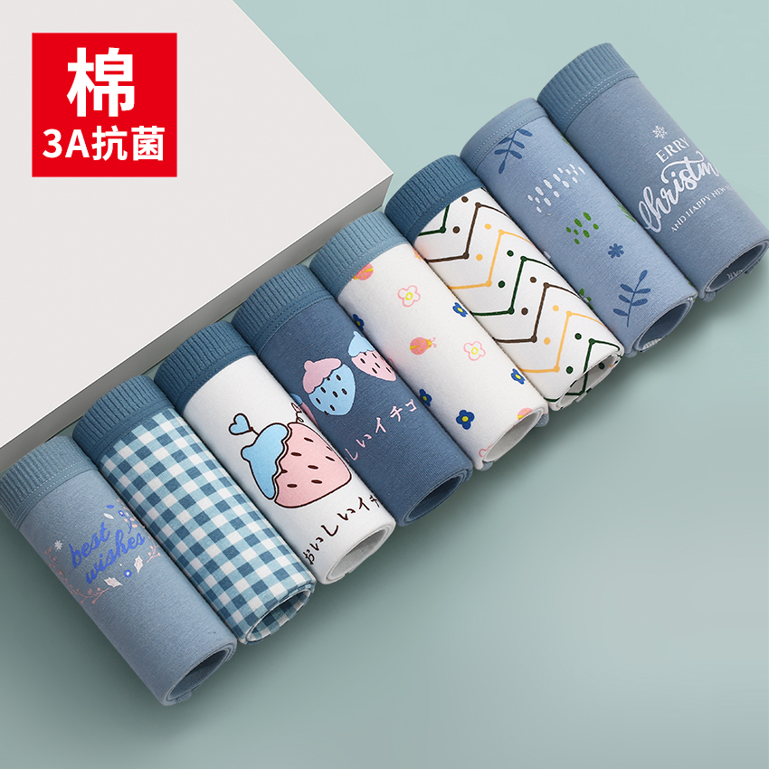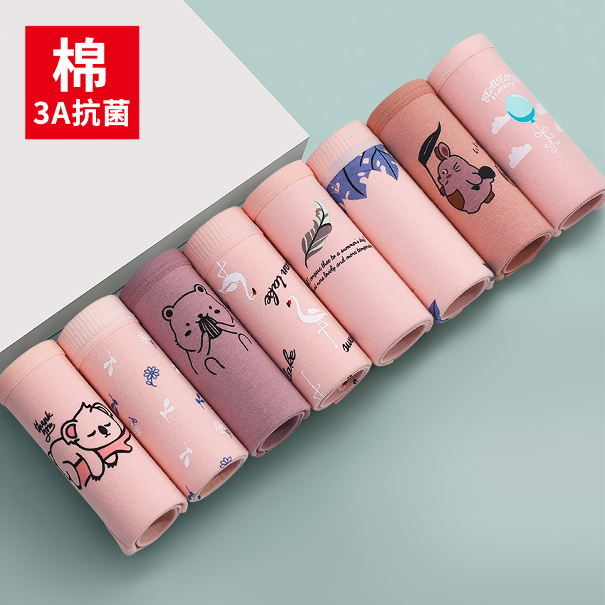 三角裤 茉澜朵新款 学生大童甜美卡通短裤 女棉抗菌中腰大码 女士内裤
