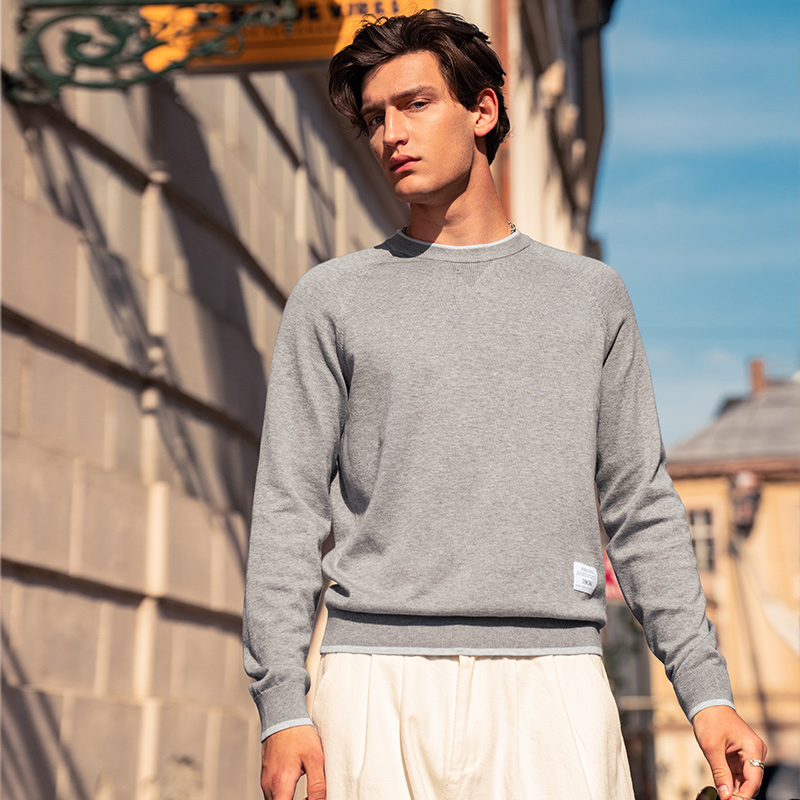 新款 胖子圆领宽松针织衫 提花长袖 打底衫 套头上衣服 毛衣男大码 秋季