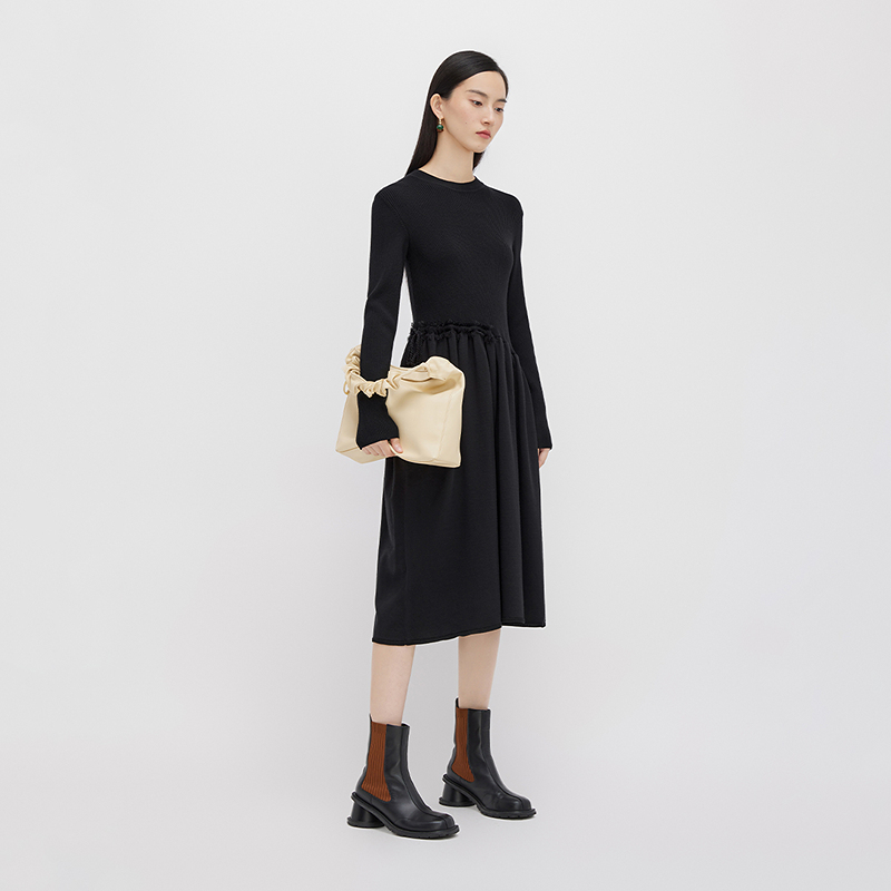 老钱风休闲百搭圆领收腰中长款 新款 连衣裙 秋季 Migaino曼娅奴女装