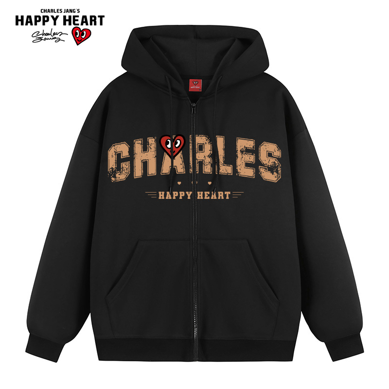 2025新款 卫衣男春秋季 宽松休闲字母印花连帽外套 开衫 查尔斯桃心